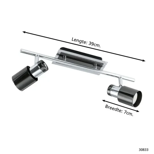 Eglo Opbouwspot – 2-lichts (Zwart/Chroom)